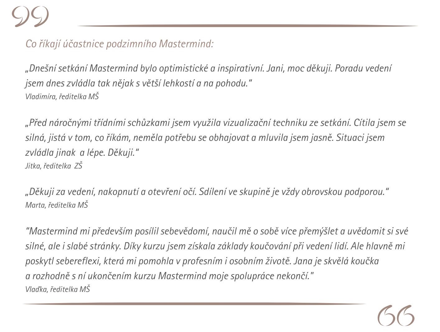 ✔ program vedený profesionální koučkou a mentorkou s dlouholetou praxí ředitelky
