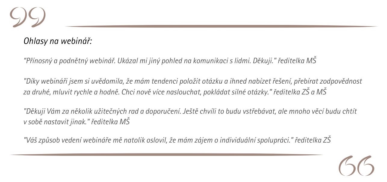 ✔ zvládat náročné situace a rozhovory s klidem a nadhledem